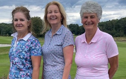 Lesley Muddiman, Sue Olds and Emma Hardy (all Broadstone) win the DLCGA Bowmaker, which was held at Sherborne GC on 28th July 2023. The runners up are Sue Edwards (Ashley Wood) , Jane Southcombe (Broadstone) and Jacqui Bowden (Remedy Oak).